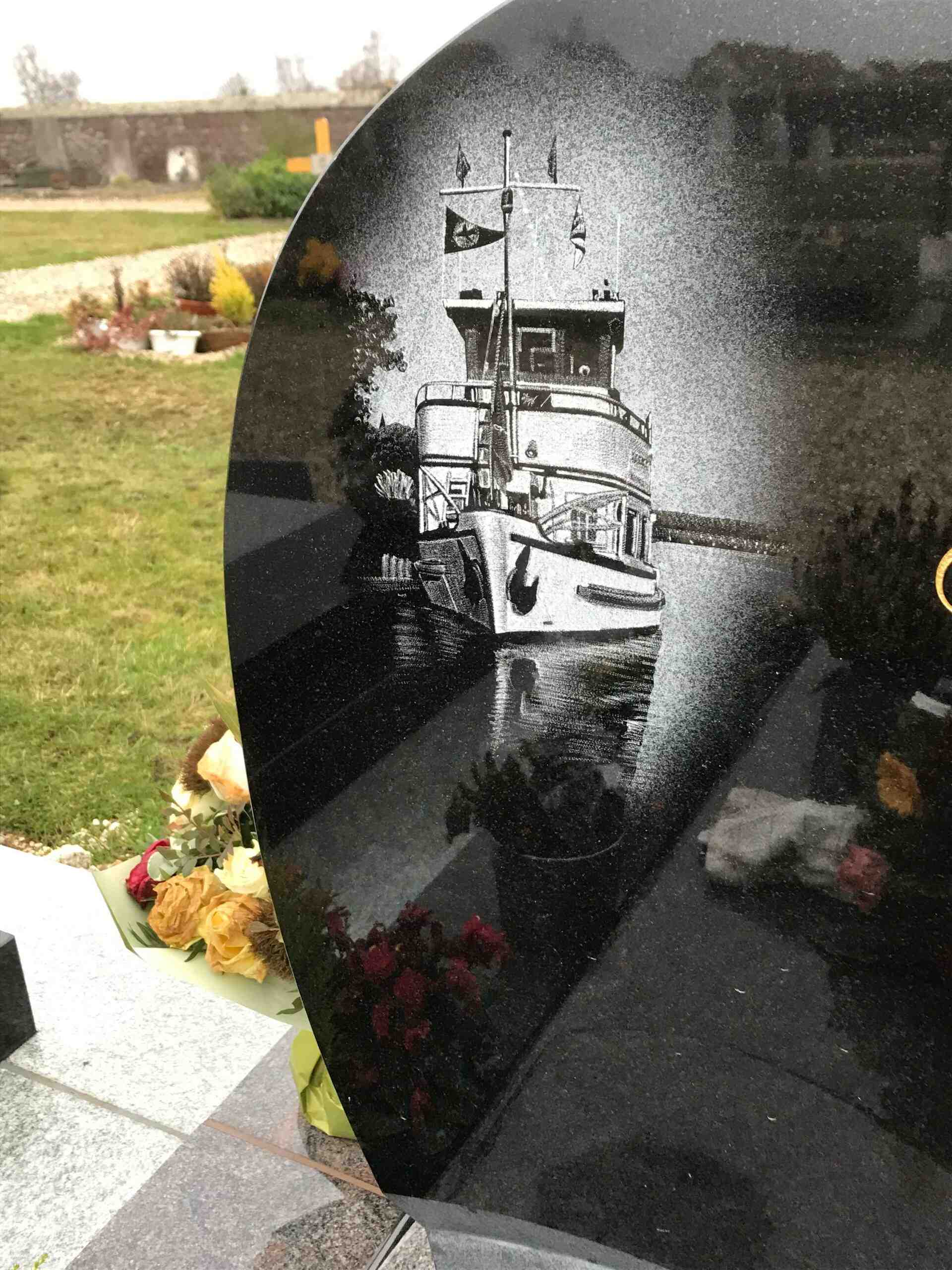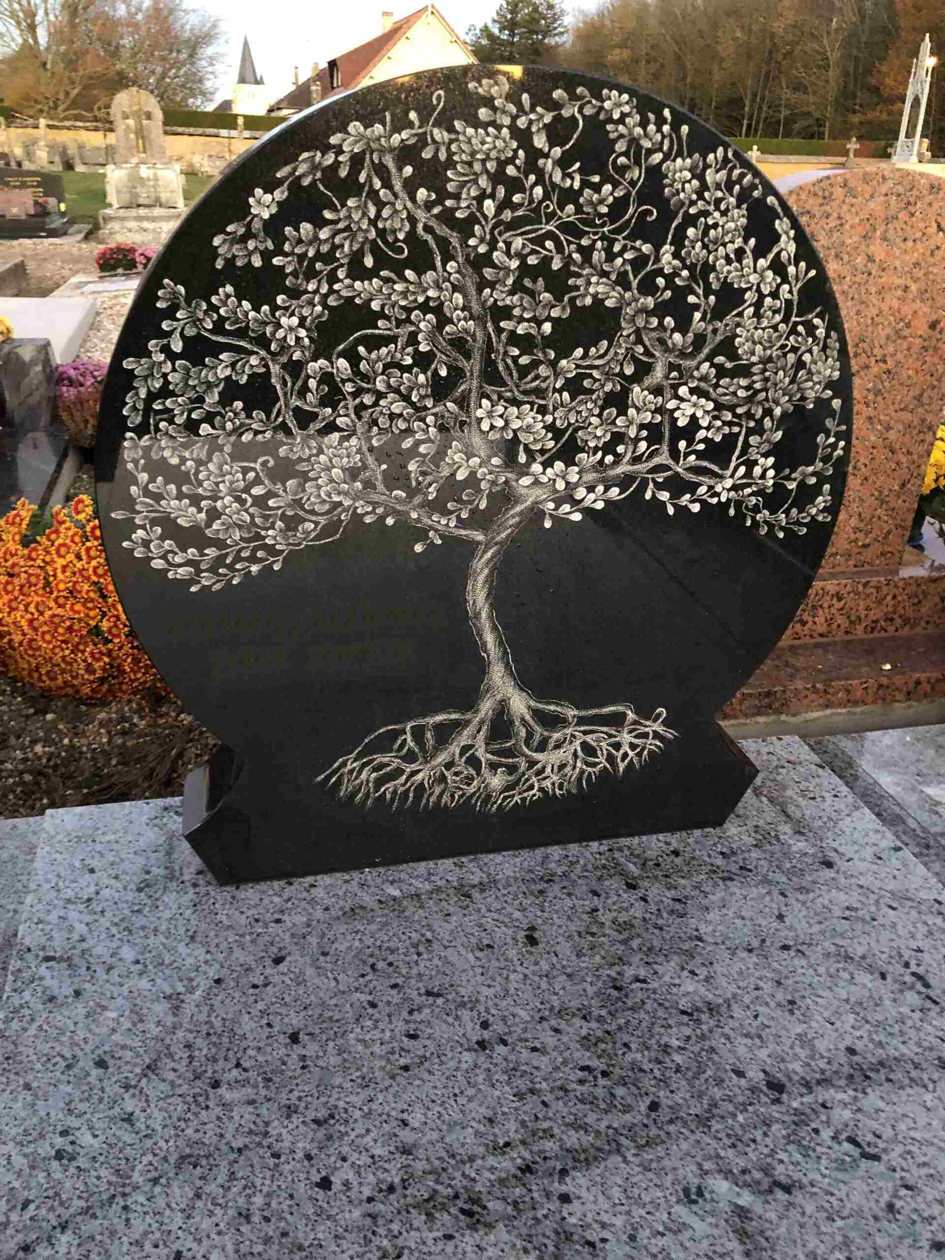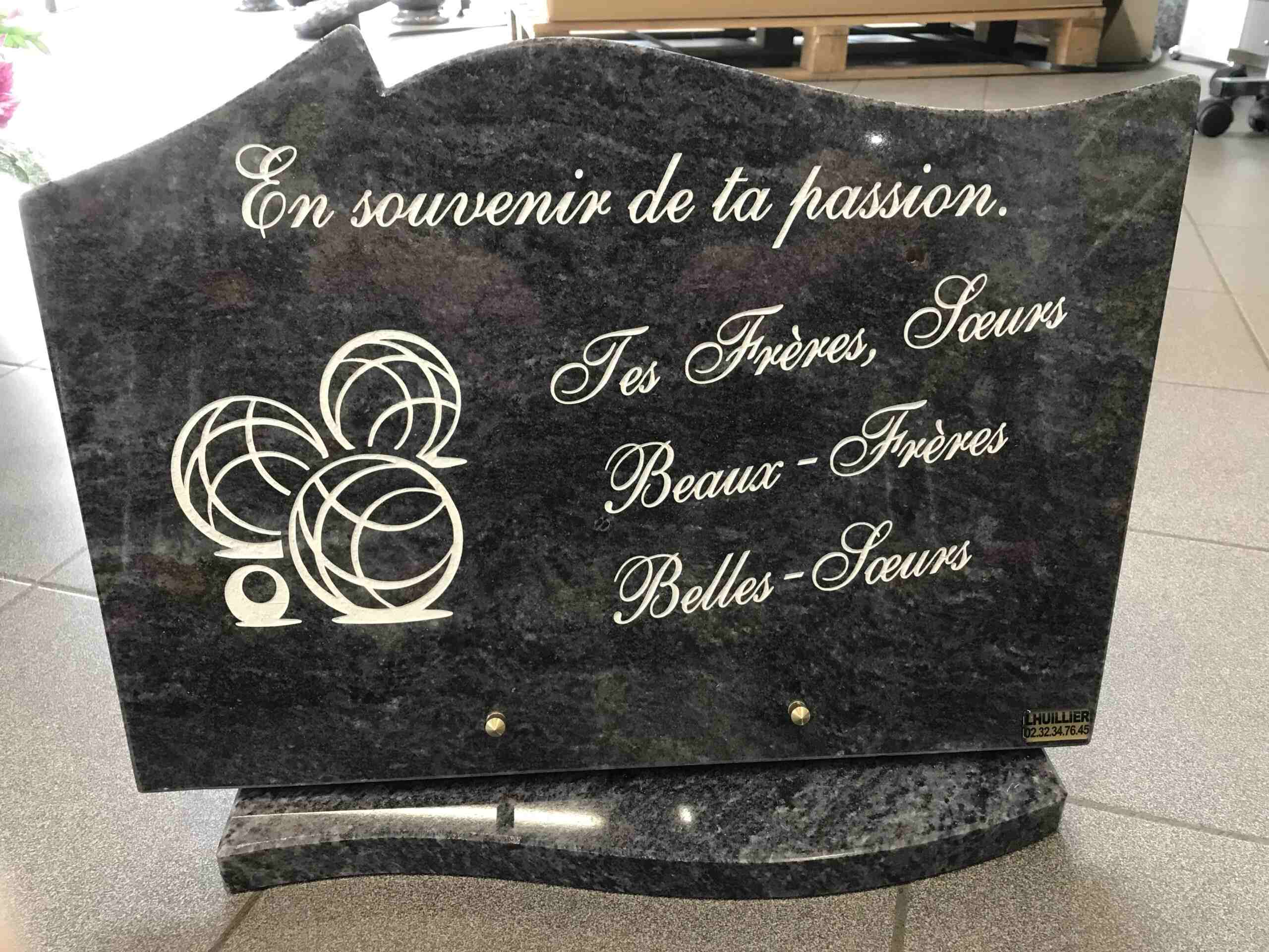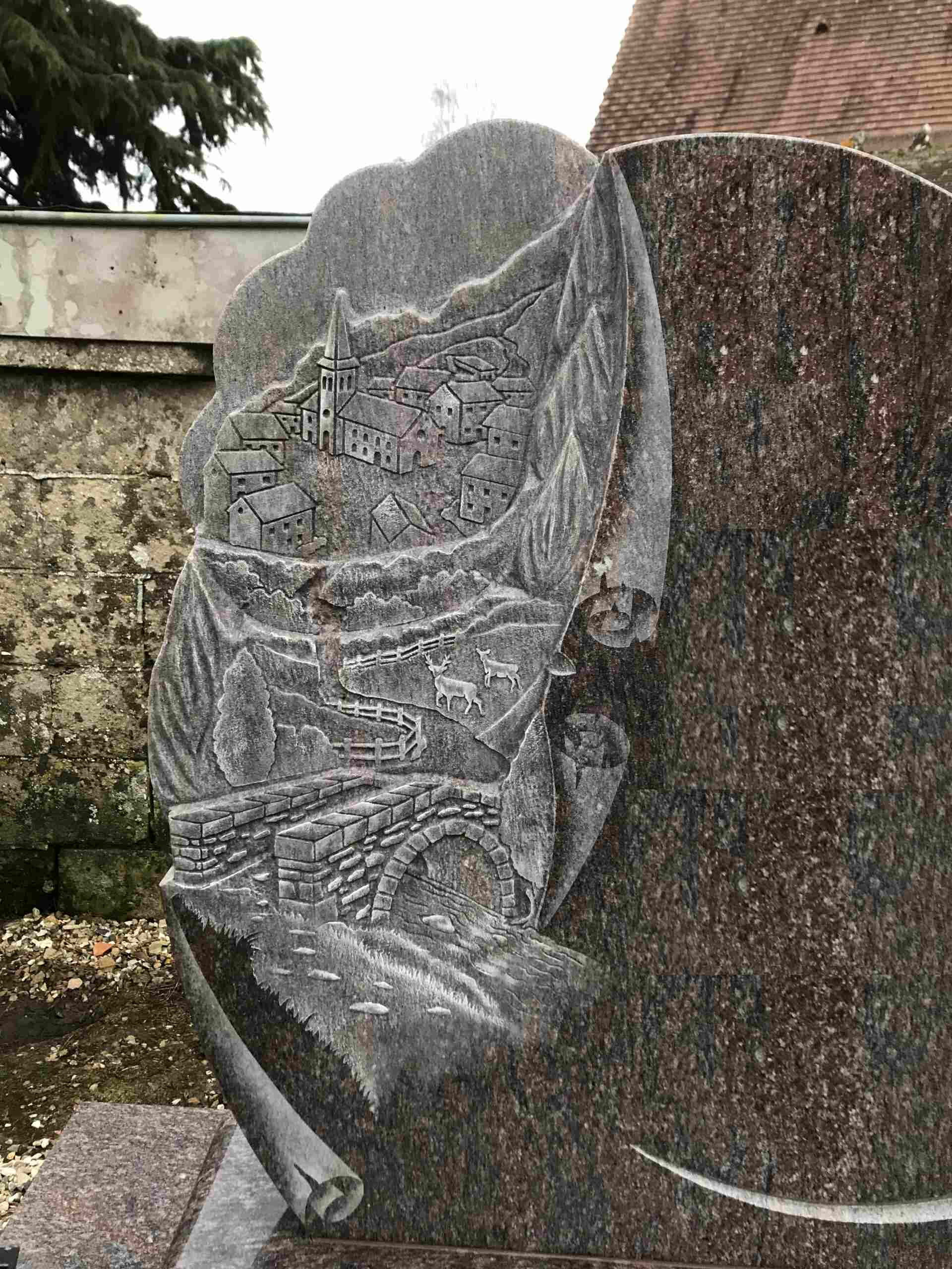 Monument funéraire Original en granit Lanhélin granit Breton avec motif litho gravé disponible avec ou sans motif, motif personnalisable,en plusieurs épaisseurs et plusieurs couleurs.