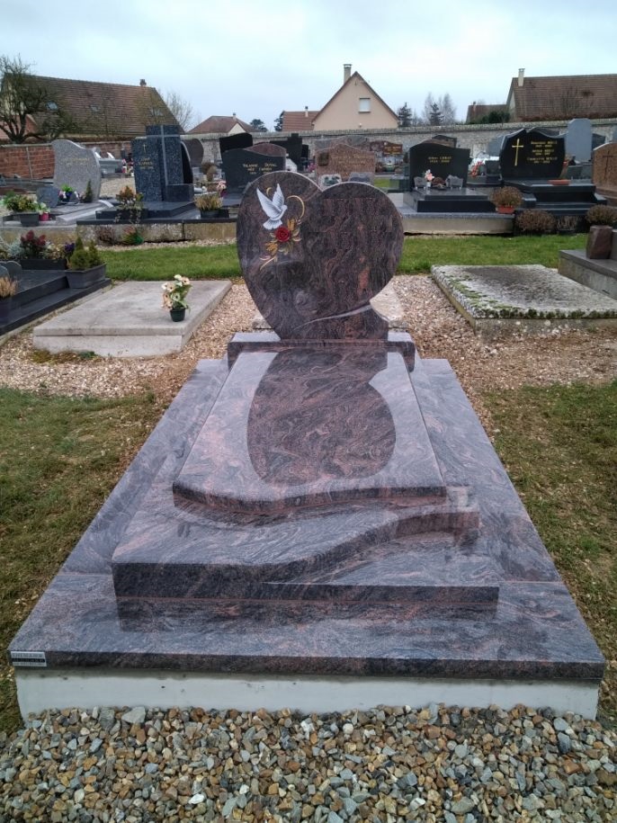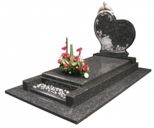 Monument funéraire classique en granit Himalaya avec cœur en Noir Fin disponible en plusieurs épaisseurs et couleurs.
