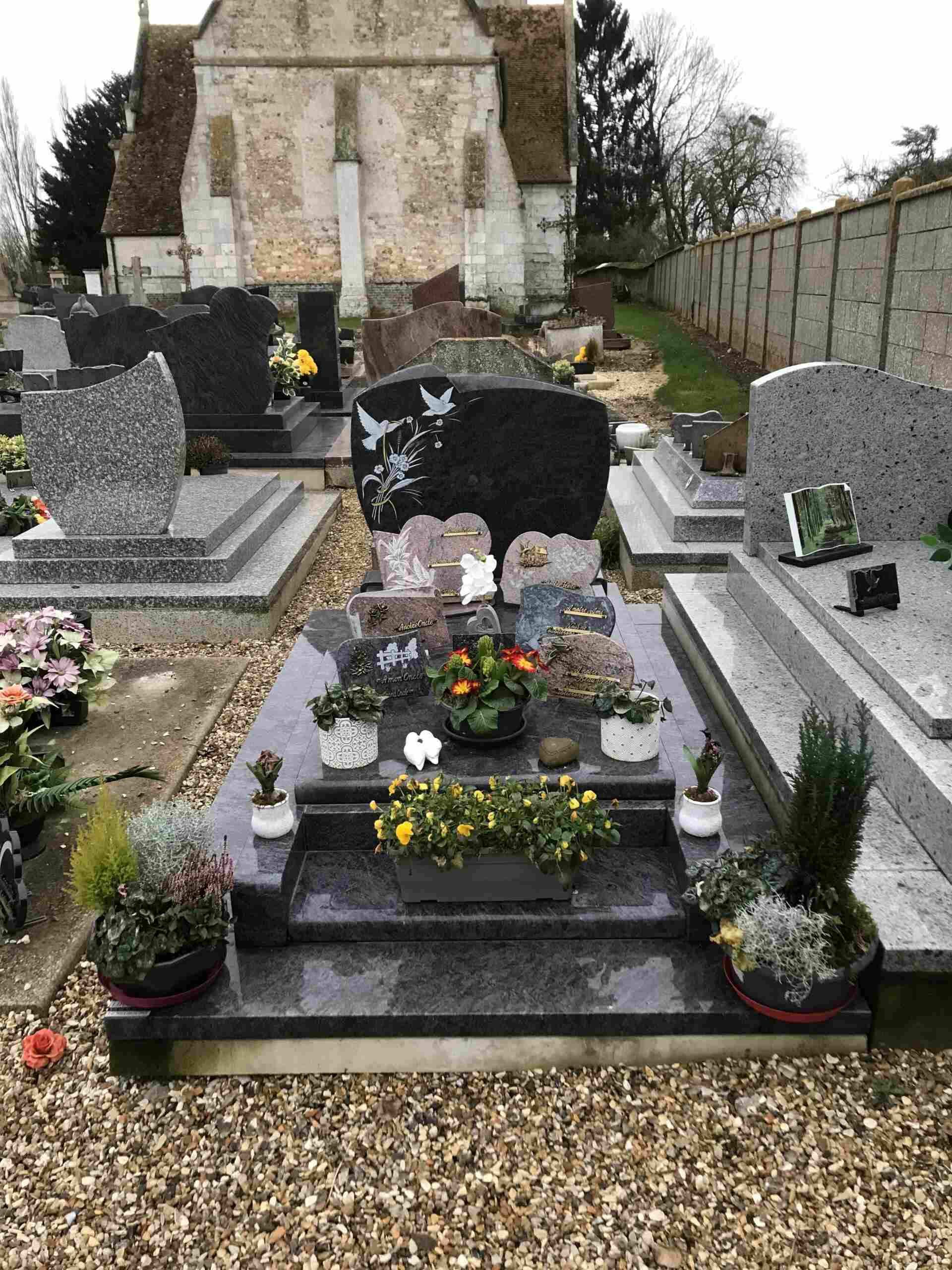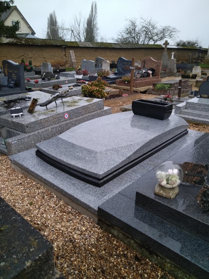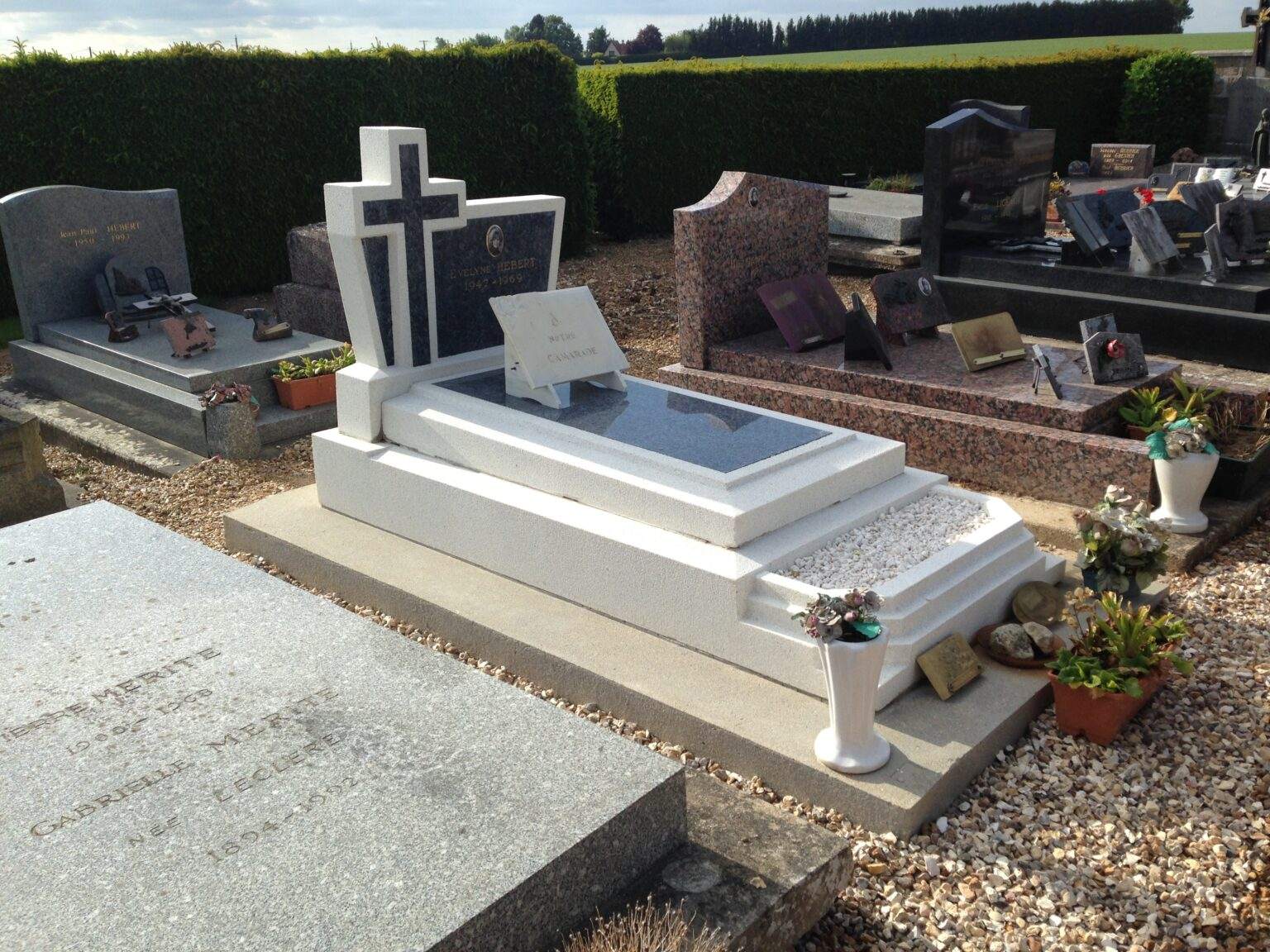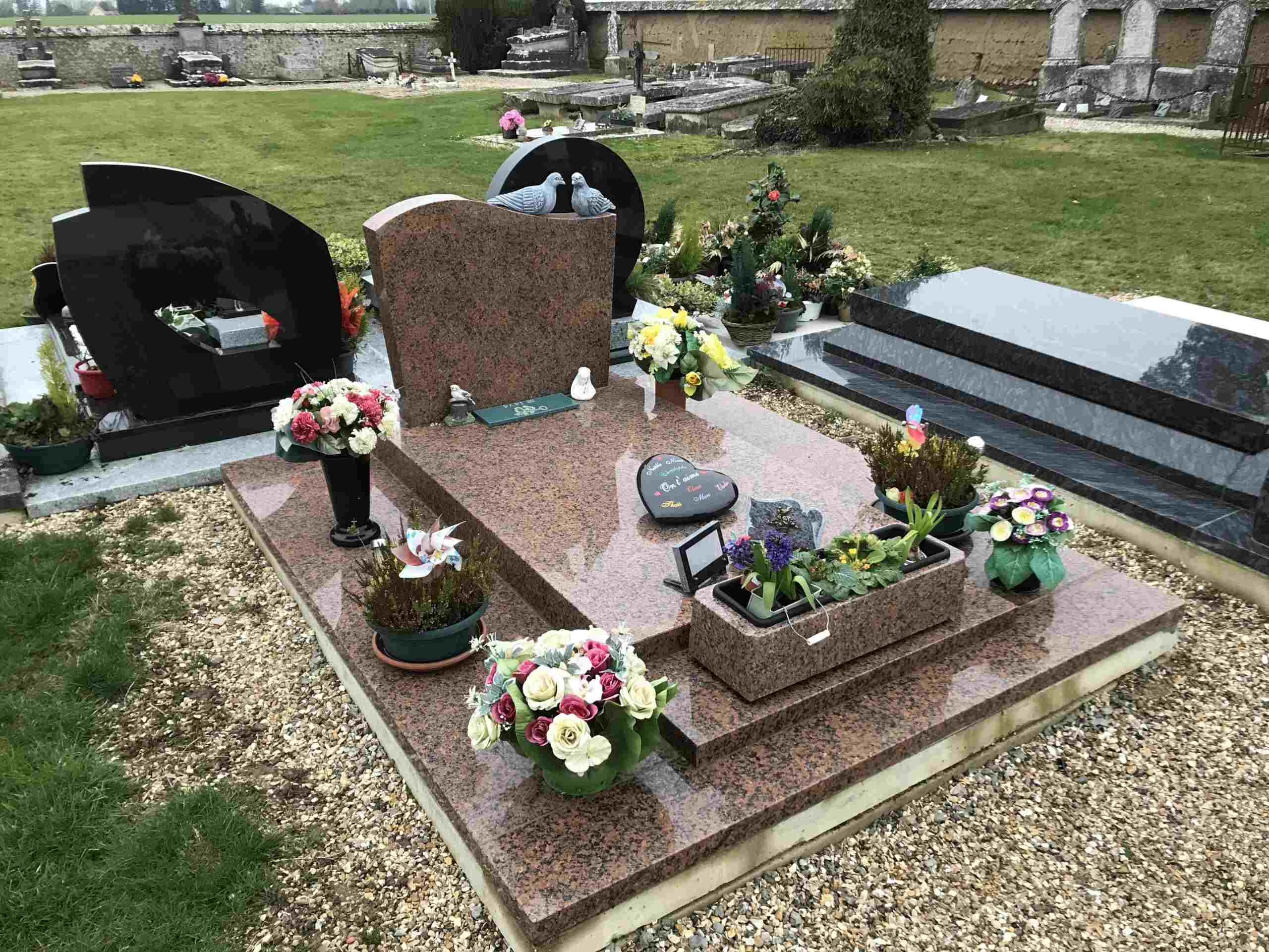 - - la pierre tombale : vous pouvez choisir parmi plusieurs matériaux, de la pierre (l’entretien est fastidieux), le marbre (le choix de couleur est limité) et le plus courant le granit qui permet d’avoir un large choix de couleurs;