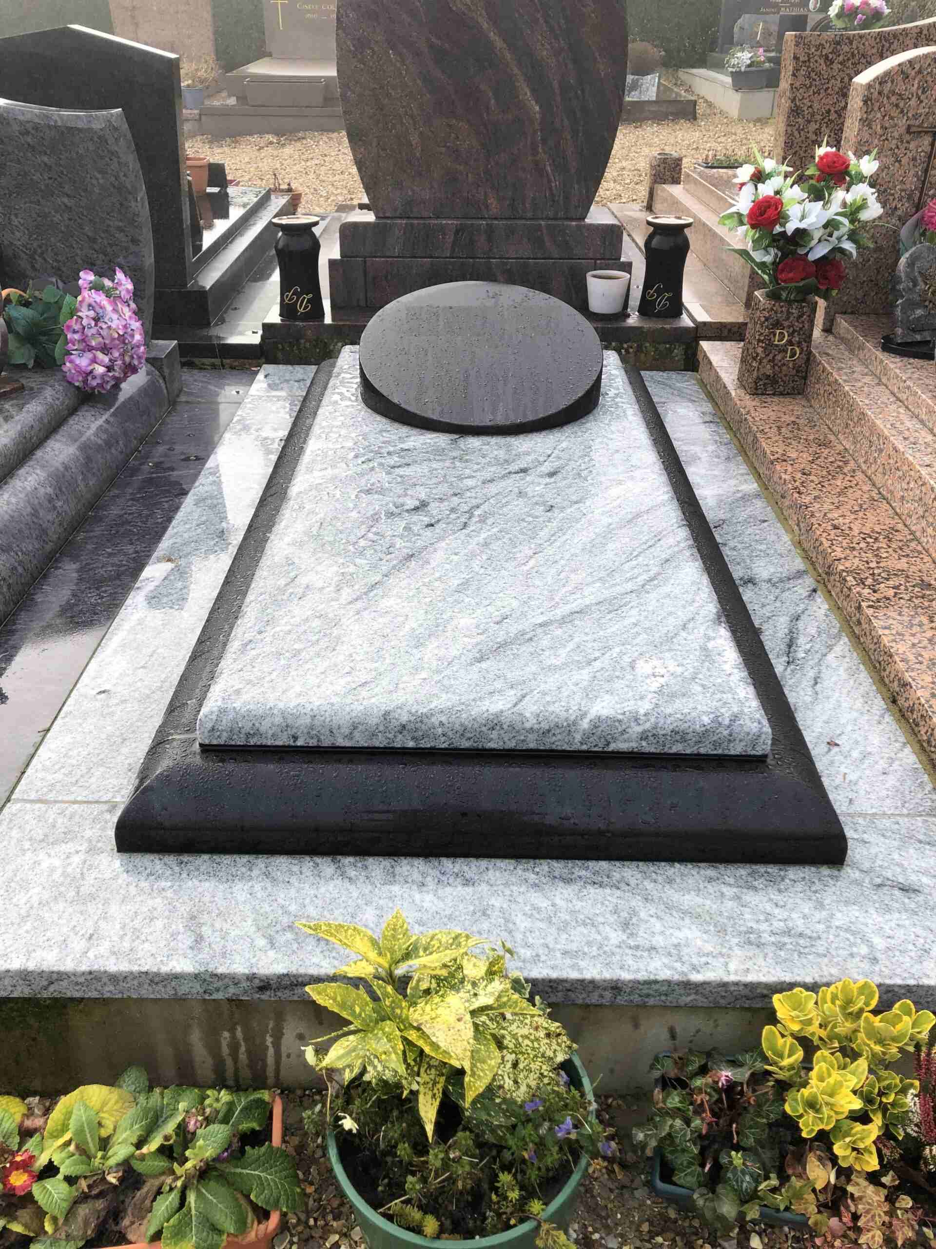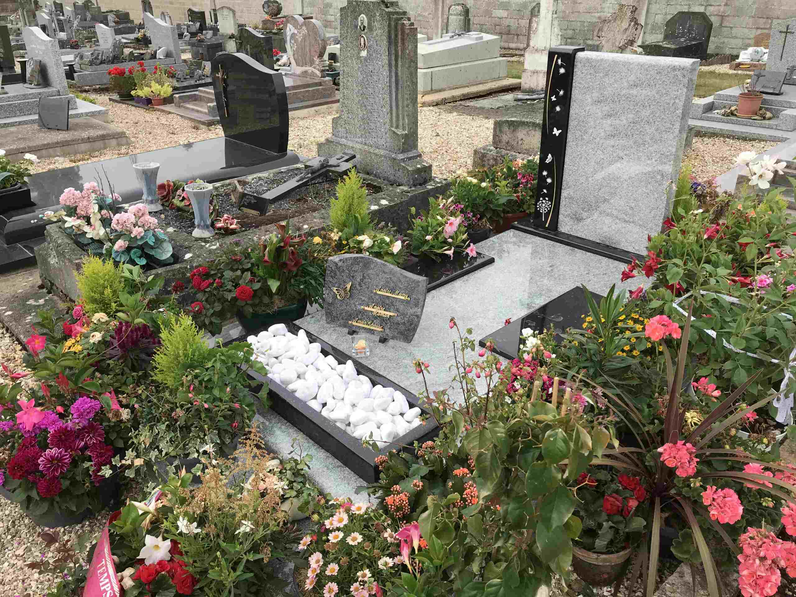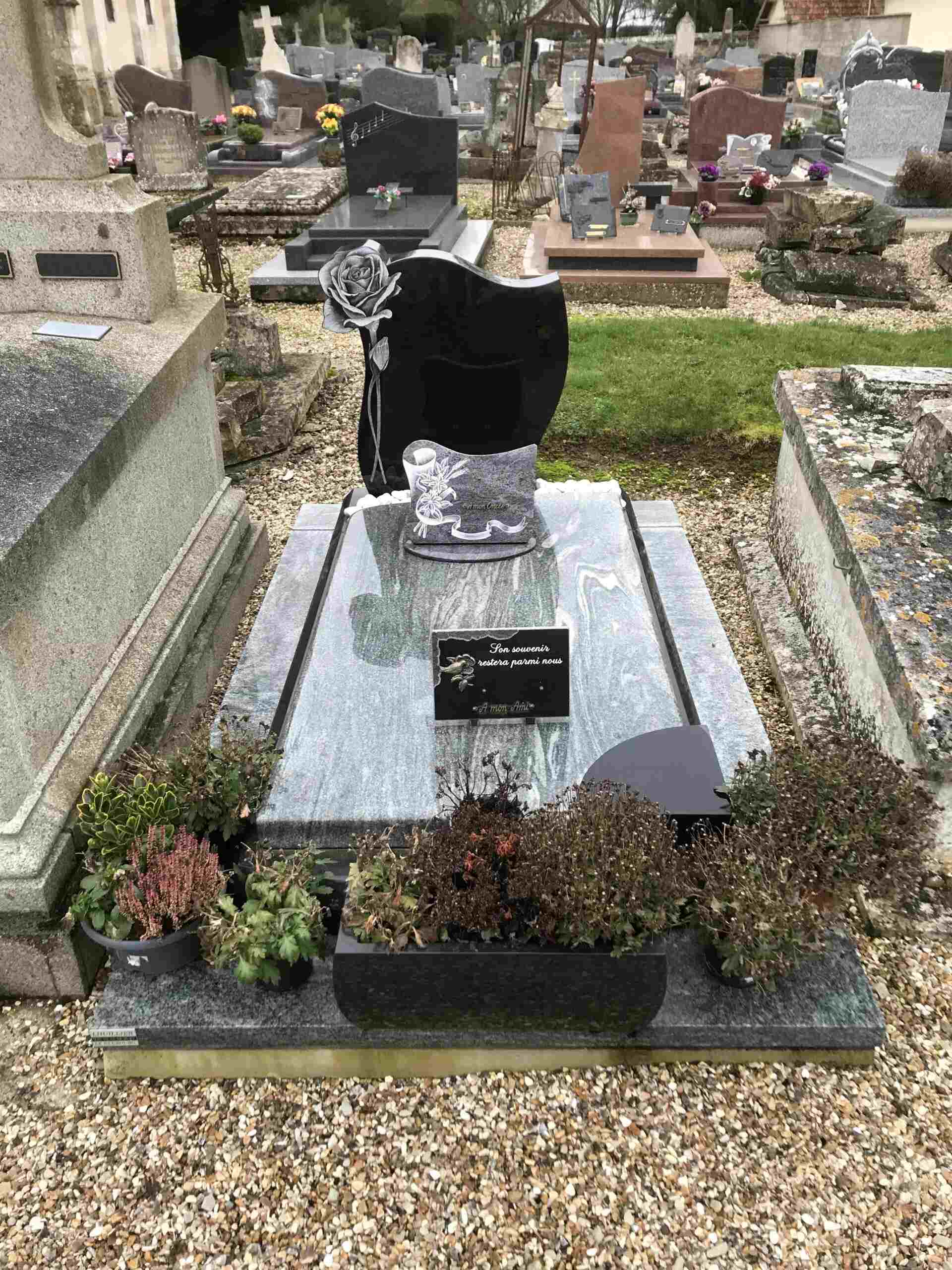 - - la pierre tombale : vous pouvez choisir parmi plusieurs matériaux, de la pierre (l’entretien est fastidieux), le marbre (le choix de couleur est limité) et le plus courant le granit qui permet d’avoir un large choix de couleurs;