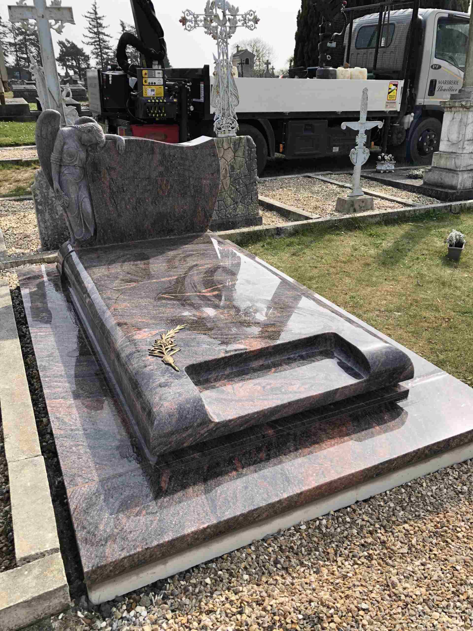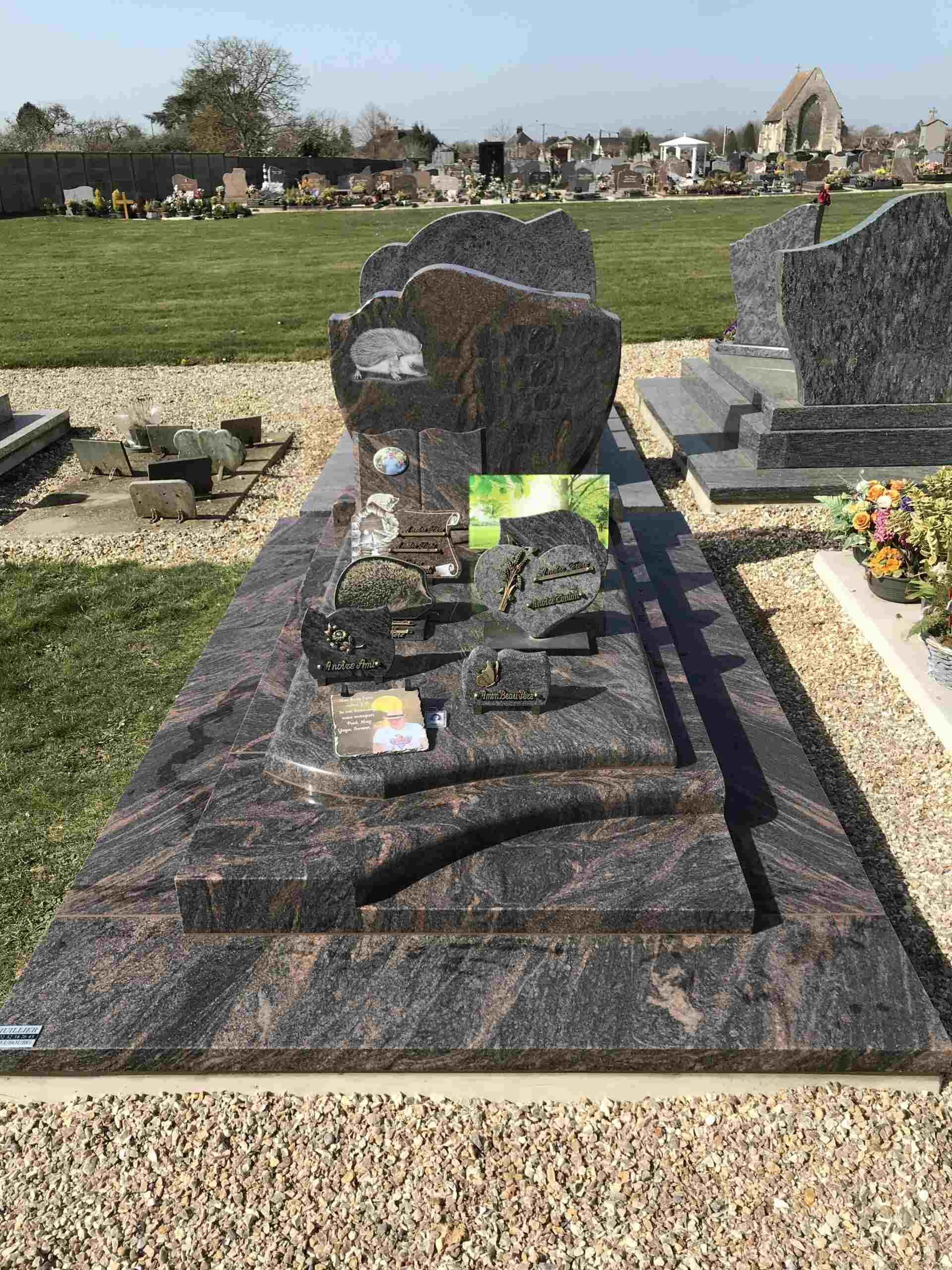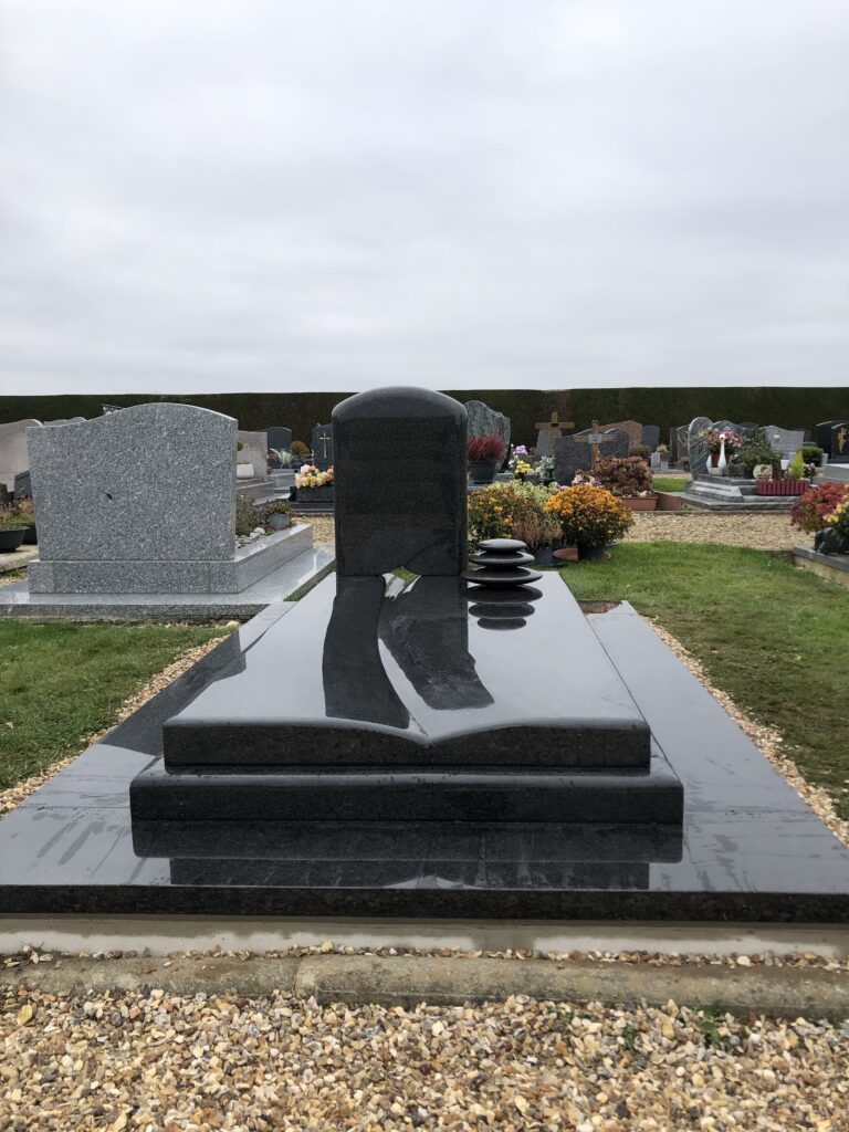 Monument funéraire original en granit Lanhélin Granit Breton disponible en plusieurs épaisseurs et plusieurs couleurs.