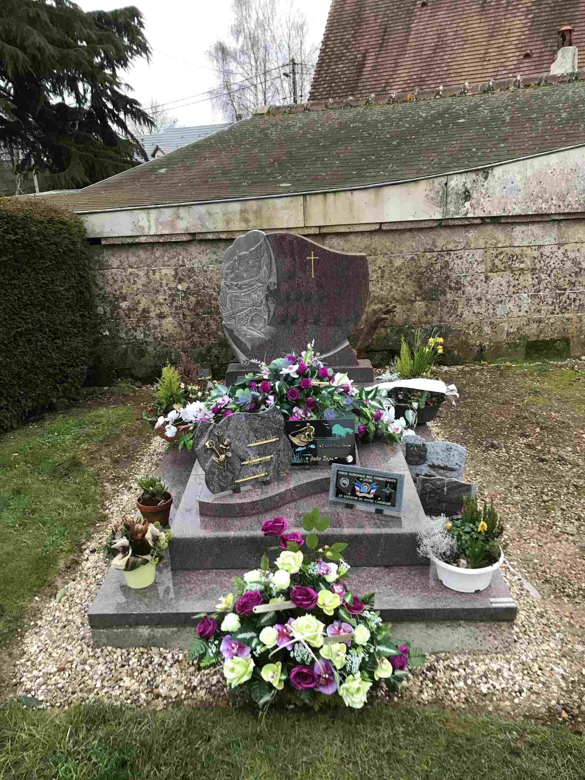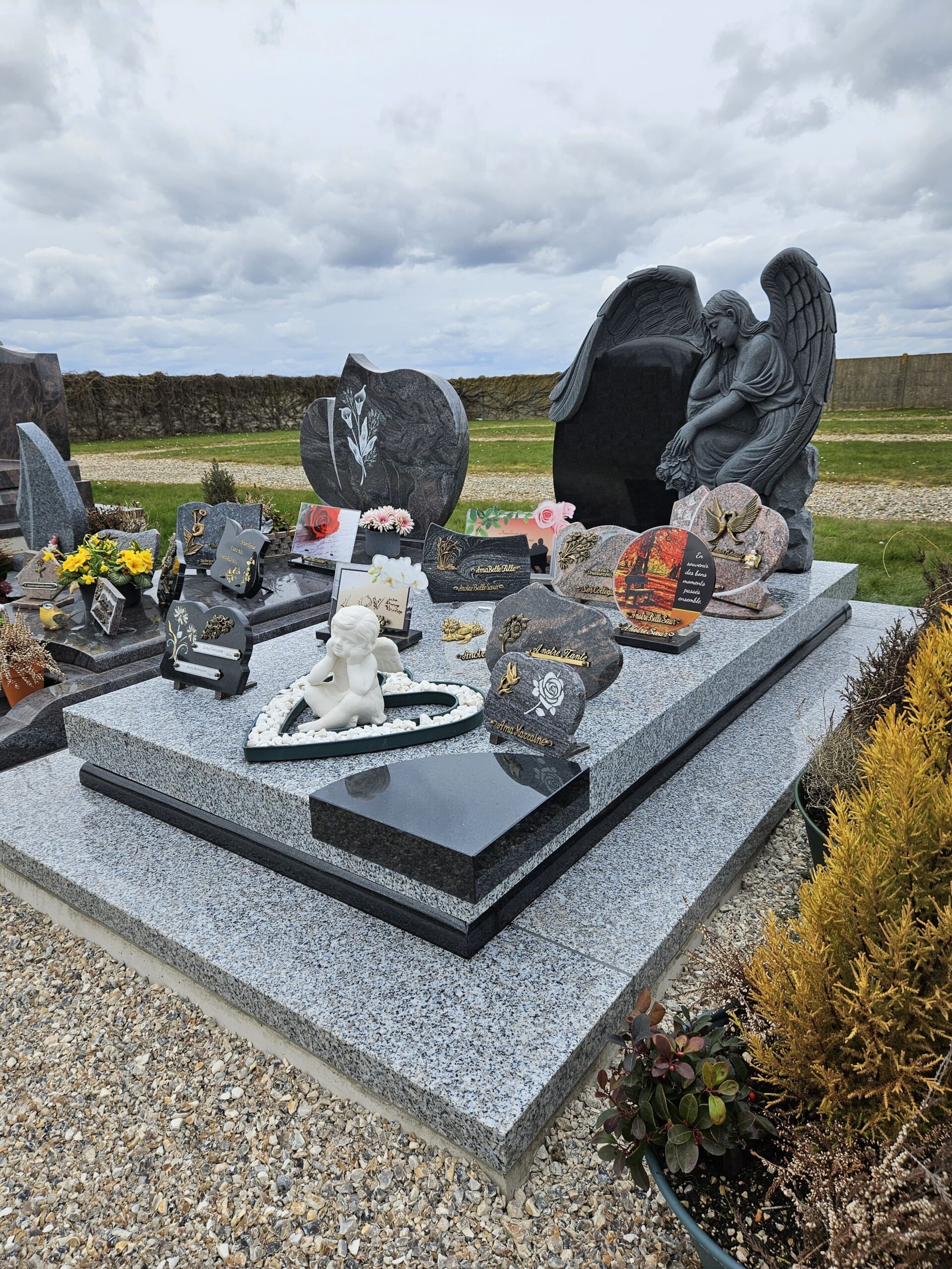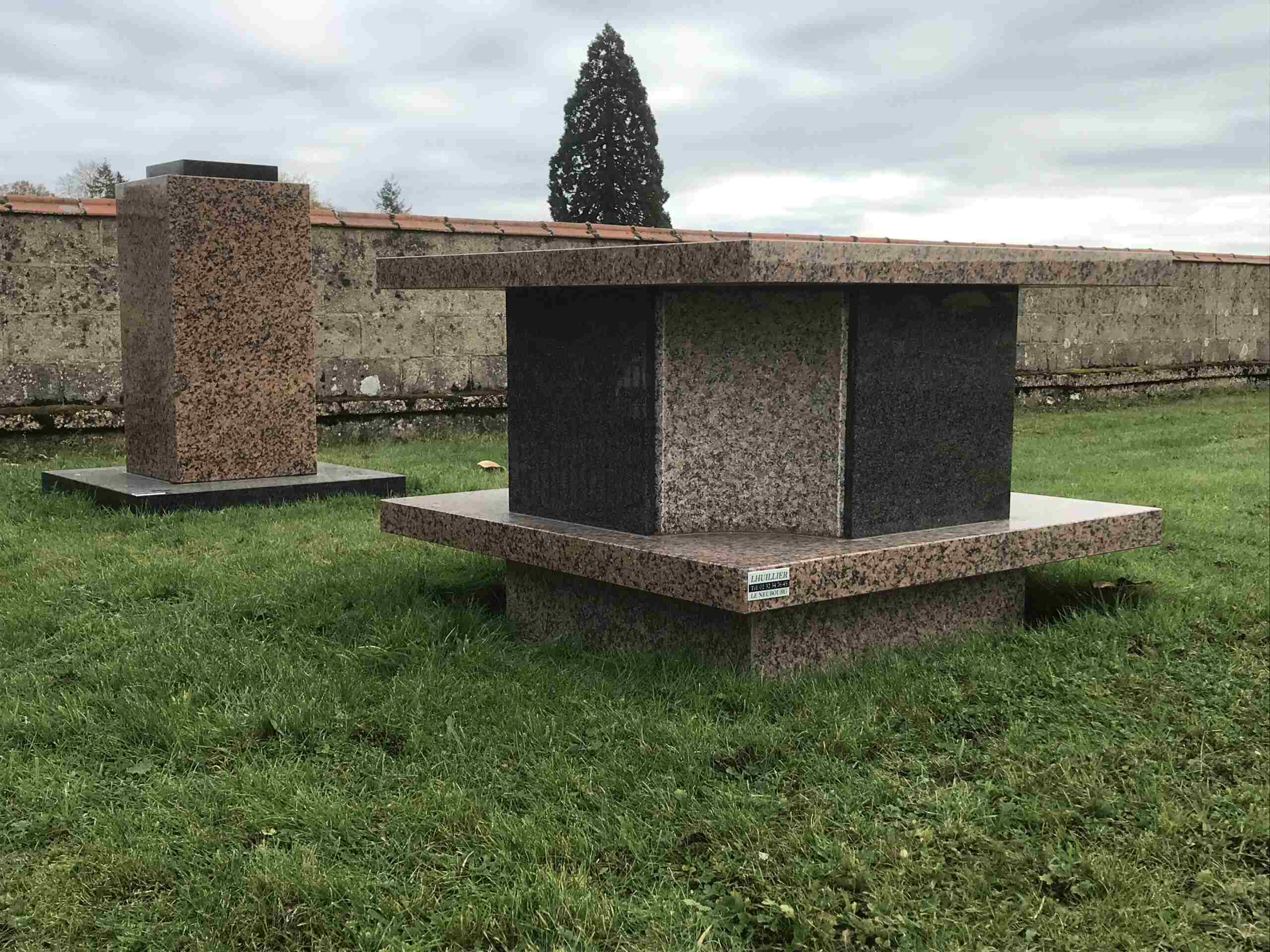 Monument funéraire original en granit Lanhélin Granit Breton disponible en plusieurs épaisseurs et plusieurs couleurs.