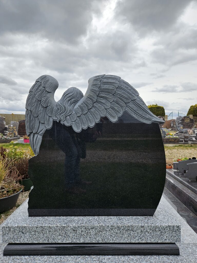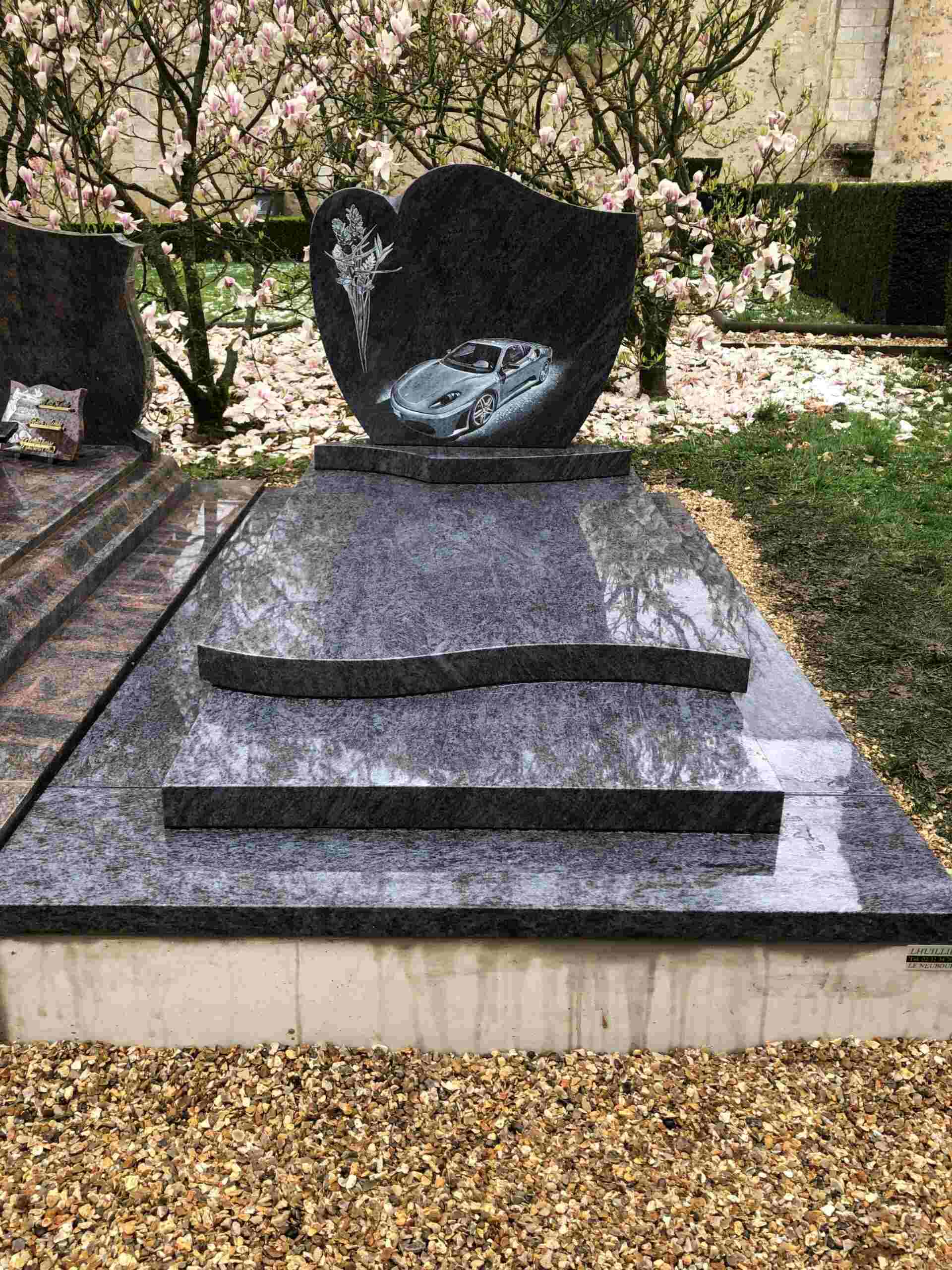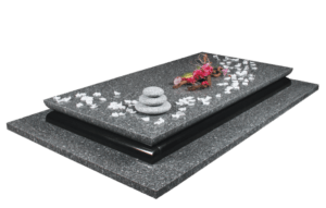 Monument funéraire Original en granit orion et noir fin disponible avec ou sans motifs, en plusieurs épaisseurs et plusieurs couleurs.
