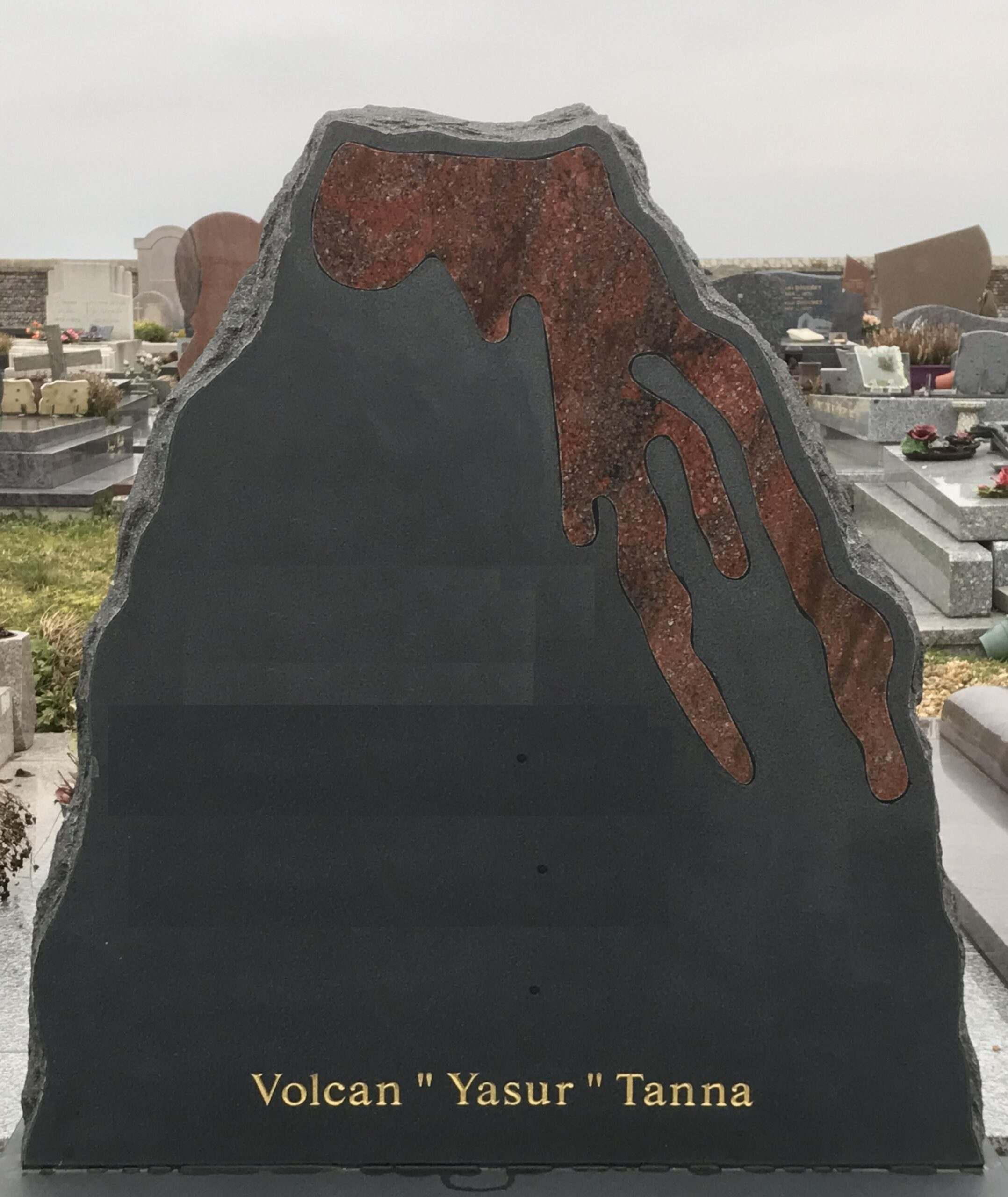 Monument funéraire original en granit Huelgoat Granit Breton disponible en plusieurs épaisseurs et plusieurs couleurs.