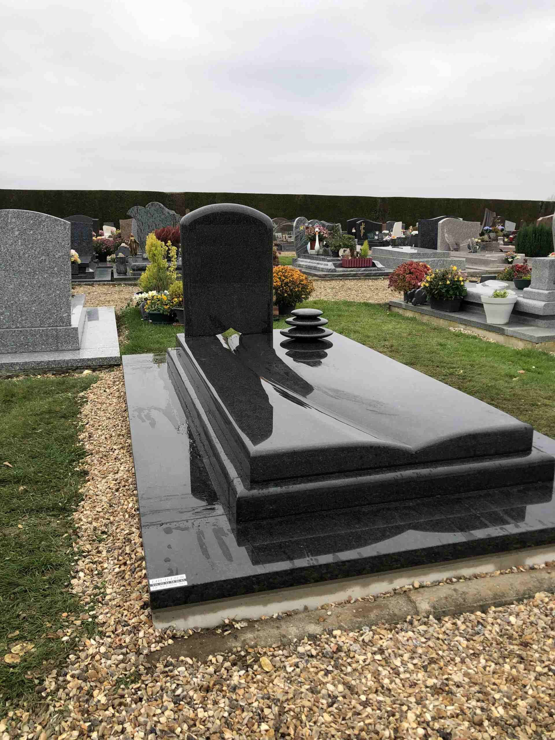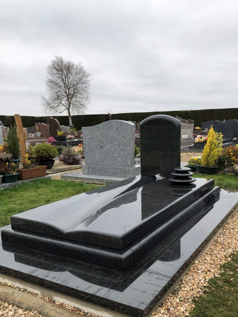 Monument funéraire classique en granit Noir Royal disponible en plusieurs épaisseurs et plusieurs couleurs.