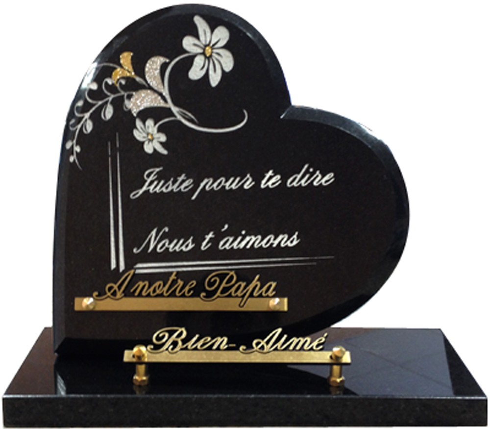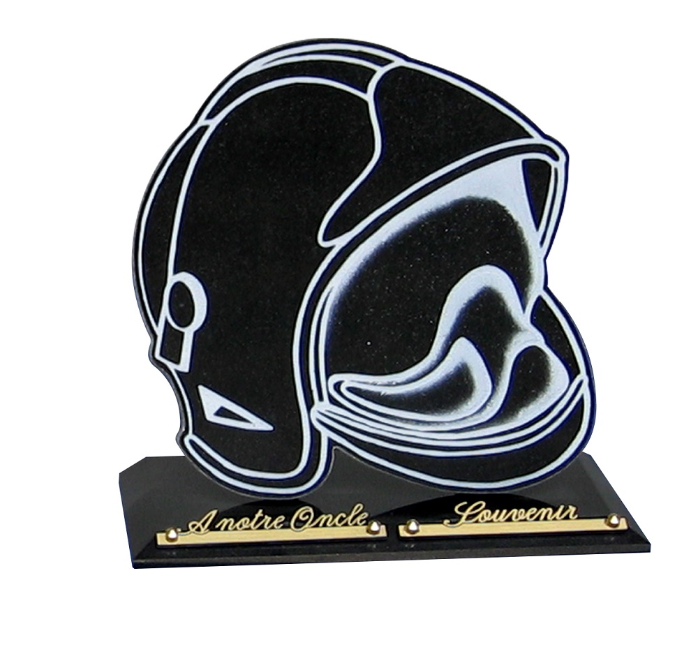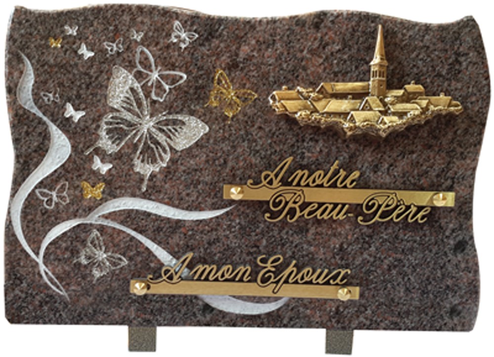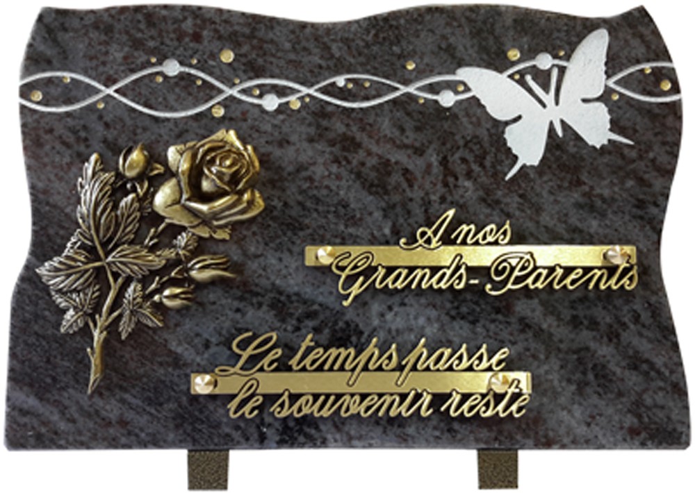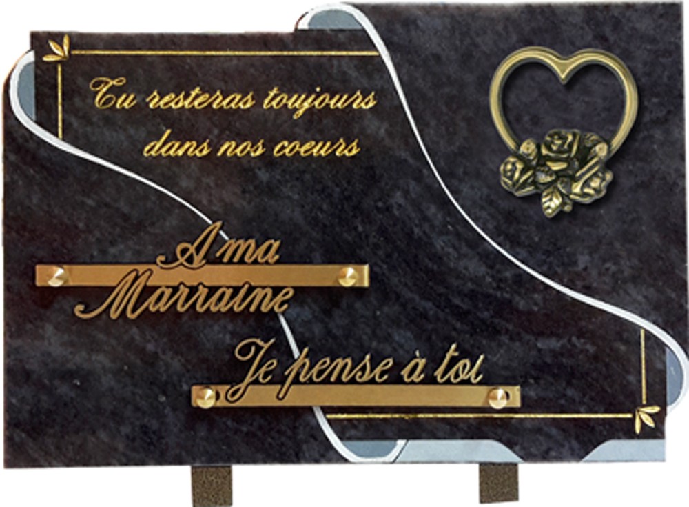 Nous disposons d’un large choix de plaques funéraires, des plus classiques au plus originales. Nous essayons d’avoir un large choix de thèmes comme la chasse, la pêche, le cyclisme, la musique, l’amour, etc.. Mais malgré tous nos efforts si aucune plaque ne vous convient nous pouvons en faire une sur mesure avec toutes les personnalisations de votre choix.